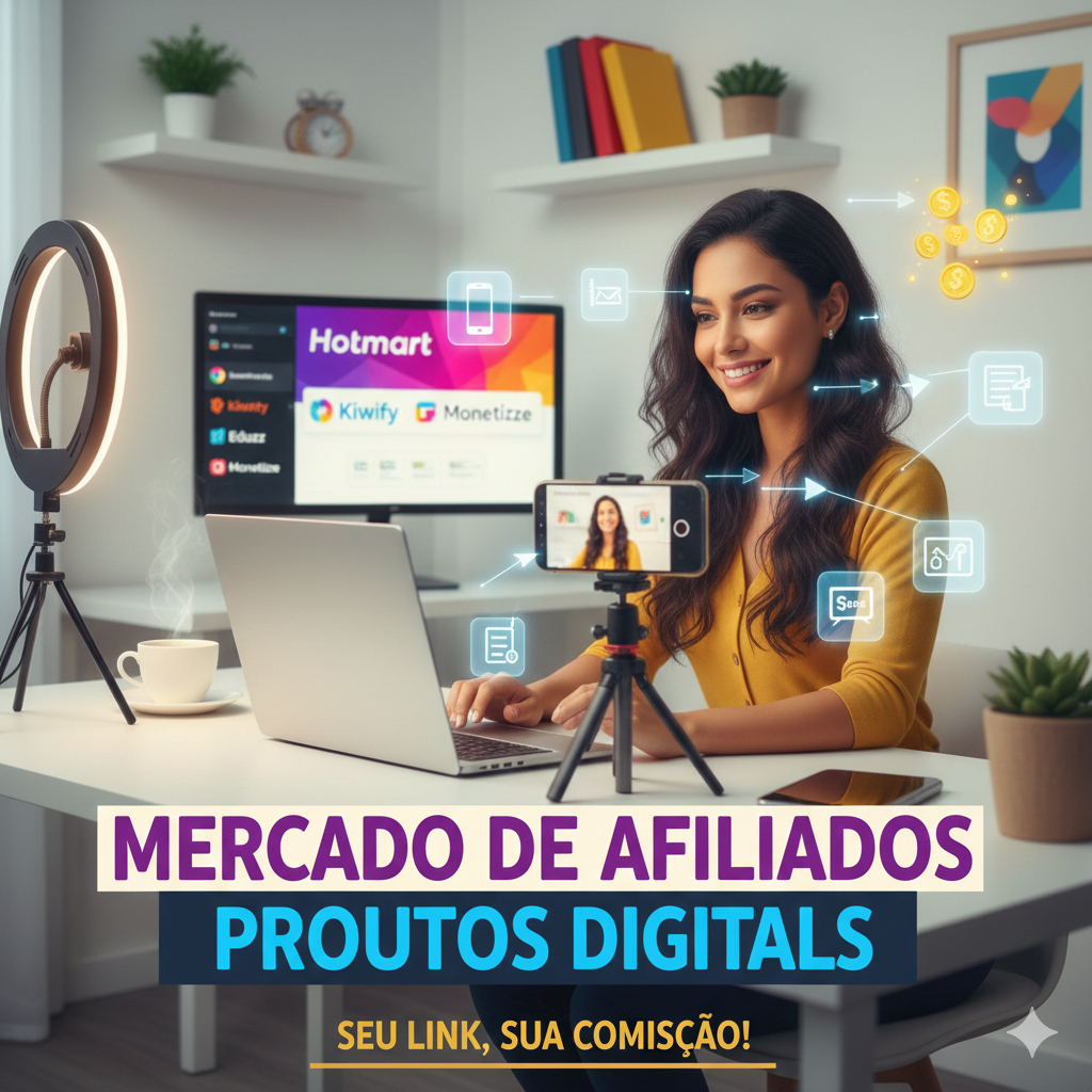 E aí a gente vai para a forma número dois, né, de fazer uma renda extra na internet, de fazer dinheiro na internet, que eu trouxe aqui, que particularmente eu acho que é uma das minhas favoritas, que é o mercado de afiliados. E aqui eu vou falar especificamente sobre produtos digitais, tá? Então assim, estou falando de cursos online, ebooks, ferramentas digitais, né? Basicamente aqui você vai divulgar um produto que já existe, um produto que outra pessoa criou. E você vai receber uma comissão a cada venda que você realizar com o seu link de afiliado, tá?